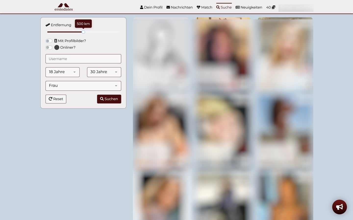 Die Webseite ErsteDates.de hat viele aktive Mitglieder. Der Mitgliederbereich der Plattform ist voll mit jungen, ansprechenden und vor allem aktiven Mitgliedern. Die Profilbilder machen bereits Lust auf einen Chat. Mehr noch, nach nur wenigen Minuten erhalten wir die ersten Nachrichten von anderen Mitgliedern. Dabei handelt es sich um Nachrichten von Moderatoren, welche uns aktiv zu einer Unterhaltung animieren.