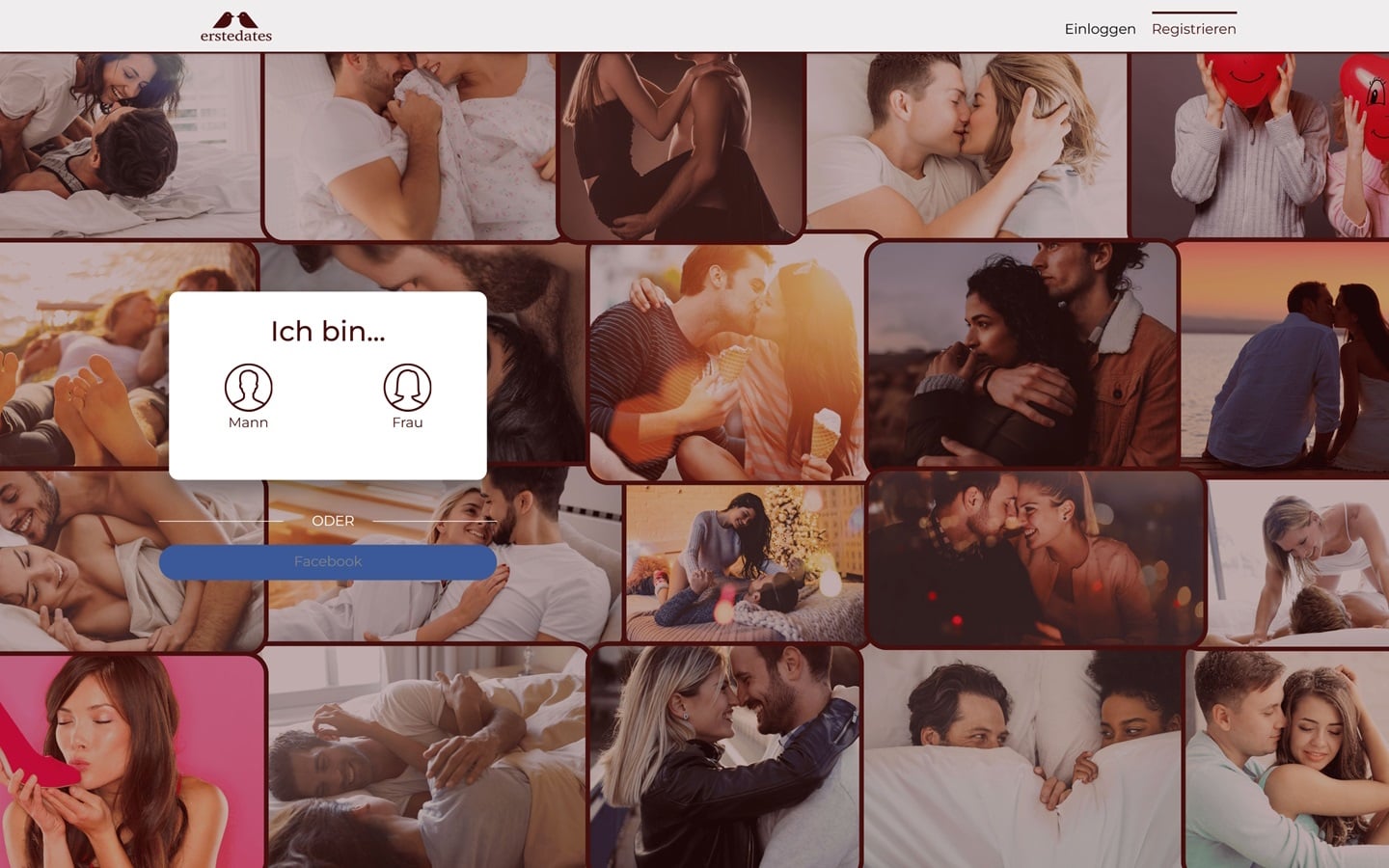 Die Startseite von ErsteDates.de sieht ansprechend und modern aus. Oben auf der Startseite gibt es viele verschiedene visuelle Inhalte zu sehen, die allerdings nicht wirklich von dieser Webseite stammen, aber es handelt sich allem Anschein nach um Online-Stock-Fotos von verliebten Pärchen. Handfeste Informationen über die Plattform gibt es nicht. Ganz unten gibt es nur noch einige Profilbilder von registrierten Nutzern zu sehen, die allesamt junge, attraktive Frauen darstellen. Dabei handelt es sich unseren Erfahrungen nach um Fake-Profile. Ebenfalls nennenswert ist, dass ganz unten auf der Startseite ein Hinweis über moderierte Fake-Profile zu finden ist. Wir haben in den AGB entsprechende Hinweise gefunden