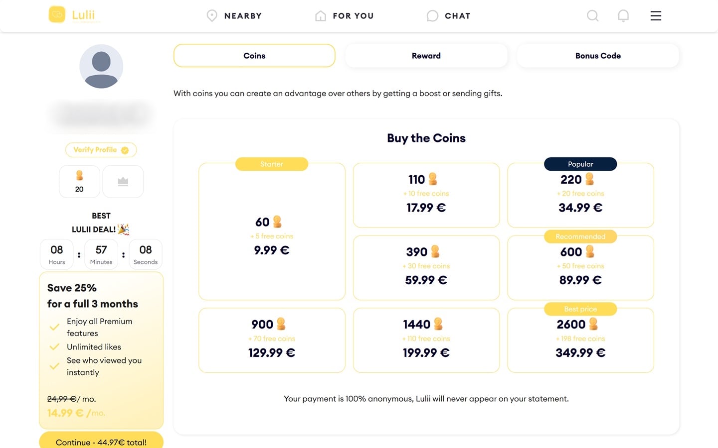 Die Plattform Lulii.de ist eine Abzocke durch eine Abo-Falle. Des Weiteren kommt hier ein moderierter Chat zum Einsatz. Das bedeutet, dass die Profile der Webseite ein Fake sind. Die Profile im Mitgliederbereich sind rein fiktiv, allerdings nicht als solche gekennzeichnet. Hinzu kommt die Moderationsdienstleistung. Moderatoren animieren neue Kunden aktiv zu einer kostenpflichtigen Unterhaltung. Kosten fallen für das Versenden von Nachrichten an. Zusätzlich gibt es eine teure Premium-Mitgliedschaft, welche in einer Falle endet. Unseren Erfahrungen nach lohnt sich die Registrierung nicht.