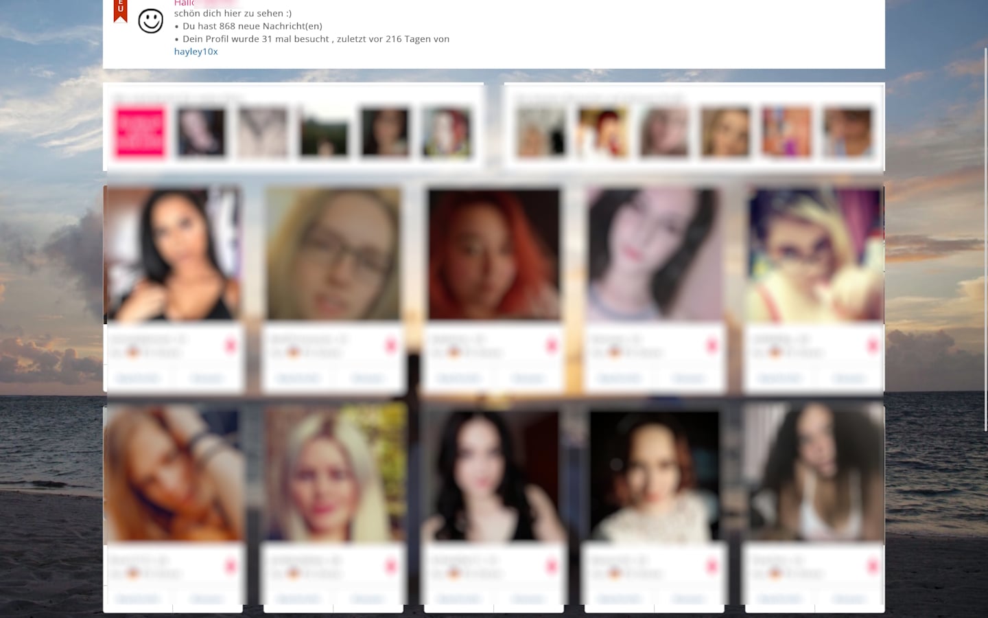 Nach dem Login wirkt der Mitgliederbereich auf den ersten Blick aktiv: Profile sind sichtbar und es gibt schnell eingehende Nachrichten. Genau das ist aber auch ein Warnsignal, weil die Kontaktaufnahme sehr früh startet – selbst ohne ausgefülltes Profil. Gleichzeitig zeigt sich die zentrale Paywall: Nachrichten können nur gelesen und beantwortet werden, wenn Coins gekauft werden.